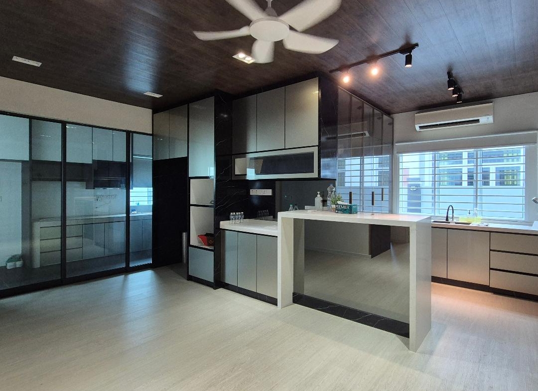 -Kitchen fully extended to the back and side with kitchen cabinet, dry & wet kitchen